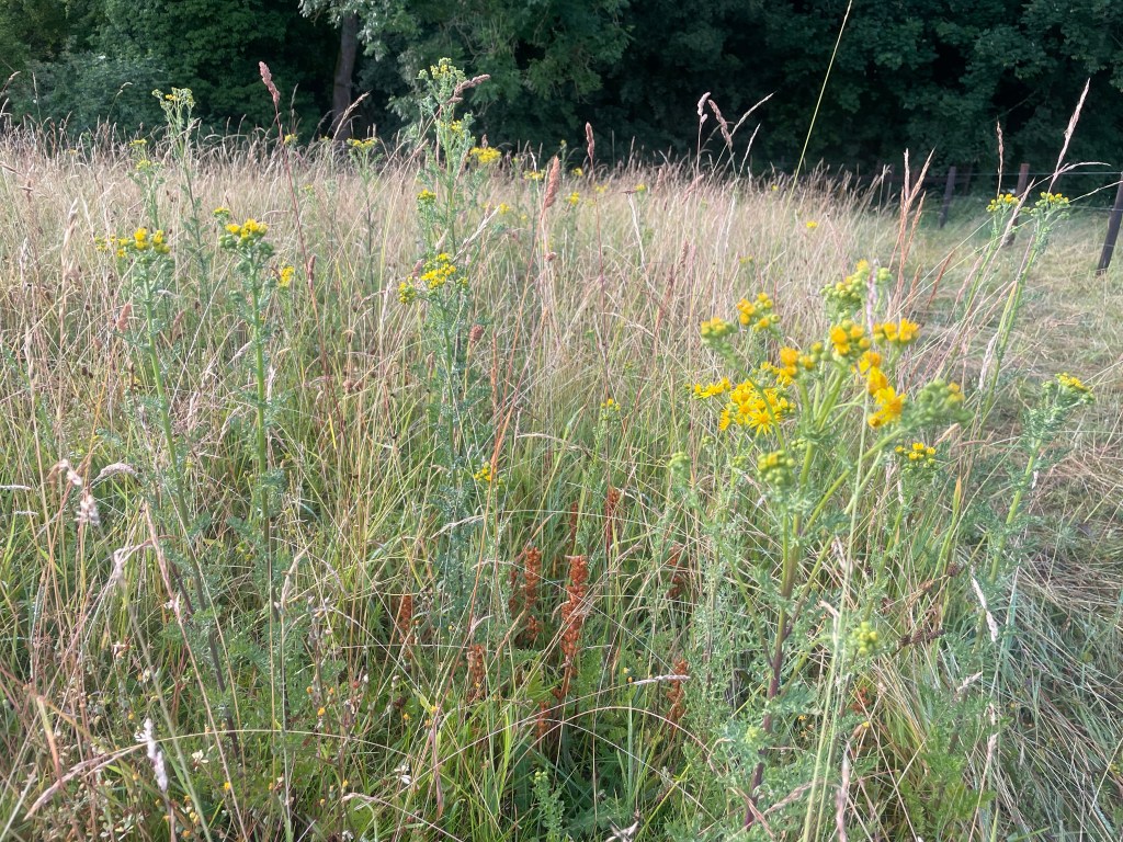 I know that ragwort provides the specialised habitat that some species need, in particular the beautiful cinnabar moth, but it is still a plant that is not welcome in horse paddocks. I reassure myself that ragwort thrives beside many roads and on waste land all over the country, to provide the habitat for these species.Fortunately the really dense ragwort is in just two of our paddocks, and just scattered bits in the majority of the field