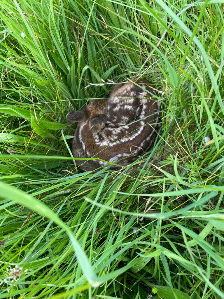 The mother deer leaves her baby hiding in long grass to avoid predators, she was never far away though.