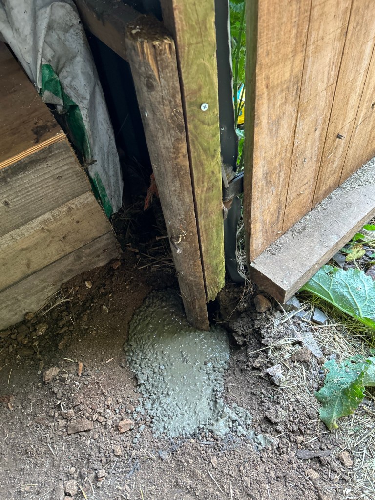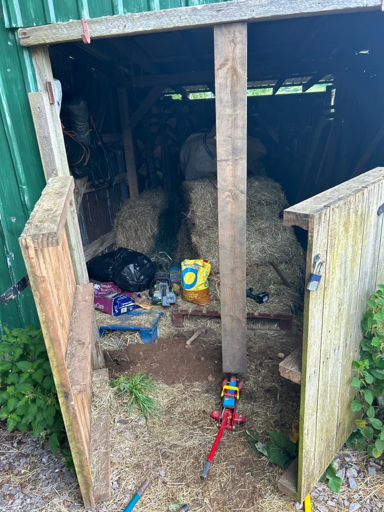 The old barn is such a useful space, but it was badly in need of repairs. Many of the main uprights were rotten and didnβt even touch the ground. The main door upright supports didnβt touch the ground either. We did wonder what was actually holding the whole thing up!Clive did some internal repairs using old fence posts, and it is probably going to keep standing for many more years.